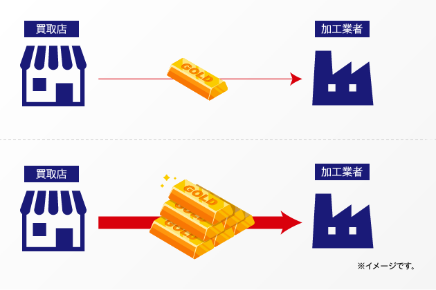 例えば、金を1ヶ月に100g規模で売る買取店と1t規模で売る買取店だと、当然多くの量を売る後者の買取店の方が高く売ることができます。